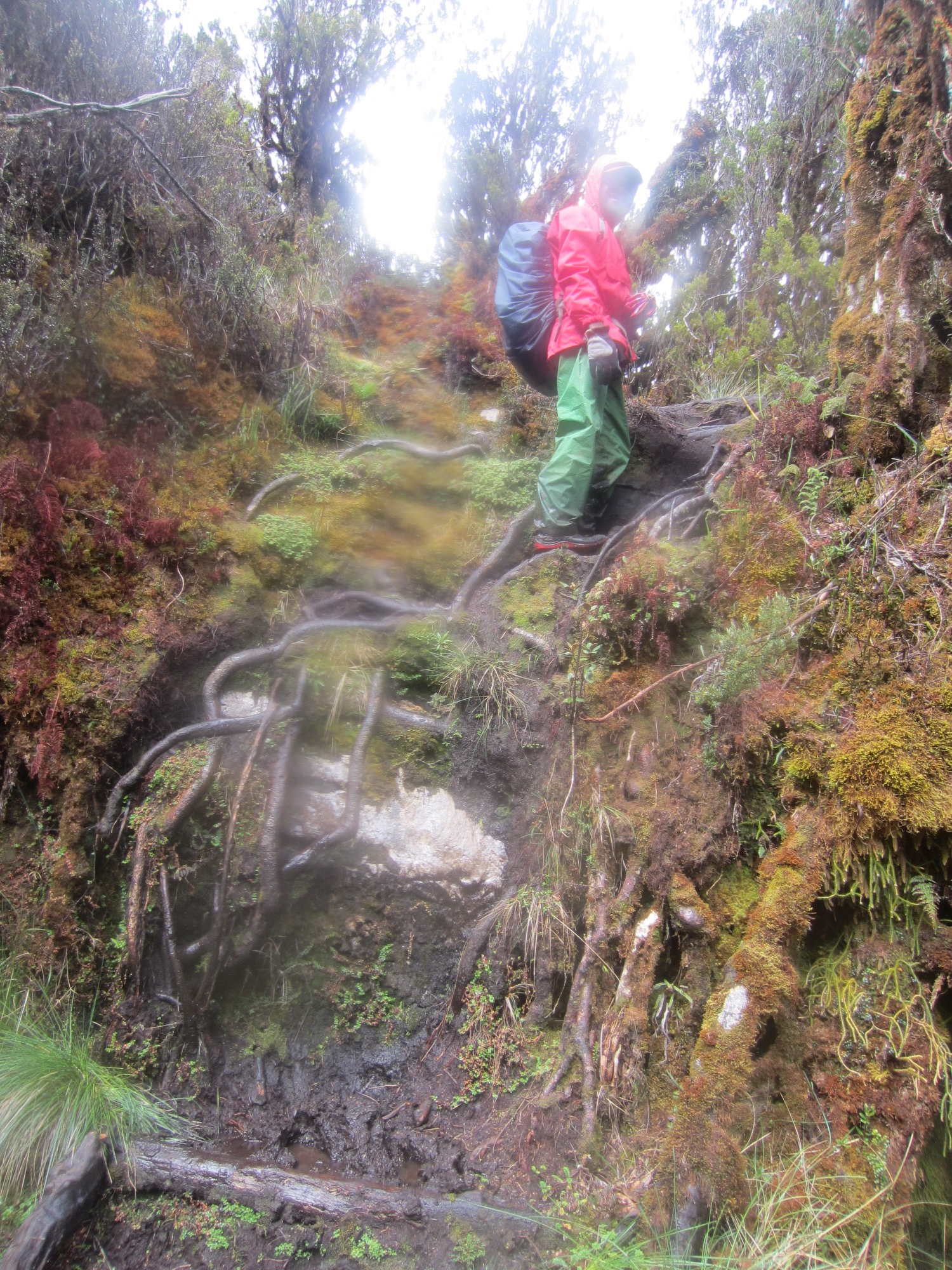 On day six we hit the high pass. The porters refused to continue - superstition, fear of cold, lack of proper clothing. So we carried our own loads and climbed through wind, rain, and creeping fog. Near the top, I spotted a rusted machete abandoned in the mud. I picked it up quietly and stowed it in my pack, unsure why I felt the urge to keep it but certain I should.