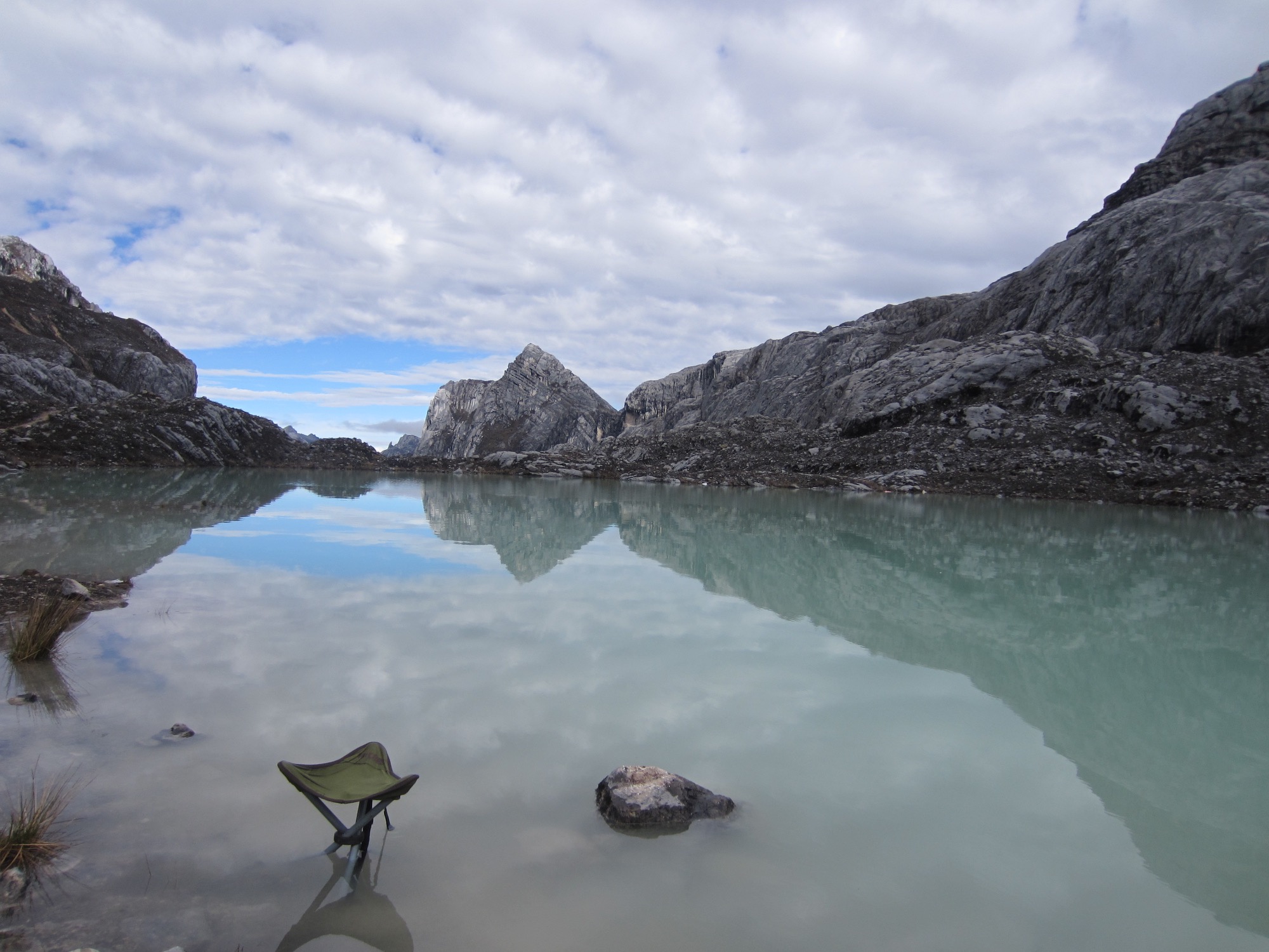 Lake Camp appeared like a reward at the end of a pilgrimage—still, icy, ringed by cliffs. I took one of my favorite photos there. We practiced rope skills beside the water and tried to rest before summit day.