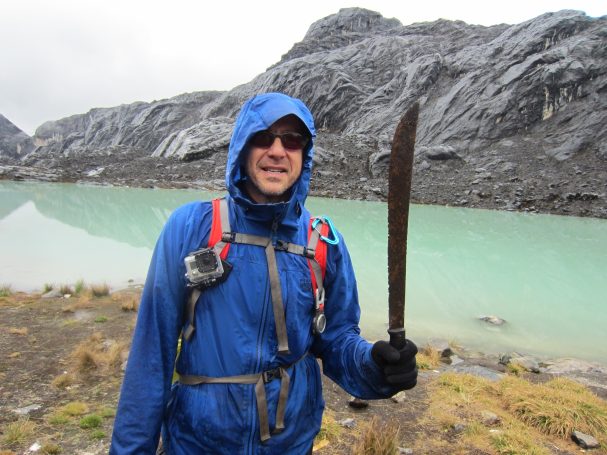 Packed deep in my luggage was the machete that I had found on the top of the pass to Lake Camp. It was my prize and luckily it made it all the way home. When I returned and family asked about my adventure, I pulled out the machete and gave it to my son. I said, “This sums up my adventure to Carstensz!”