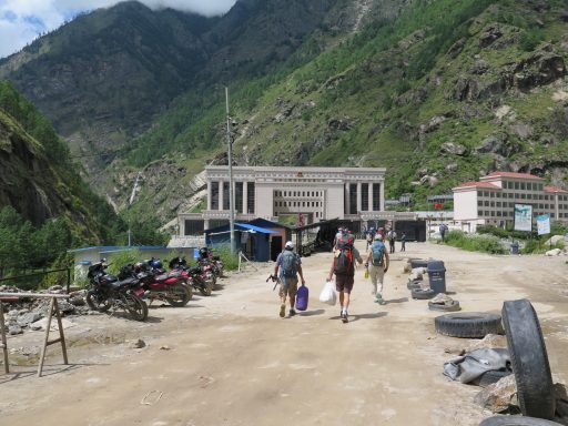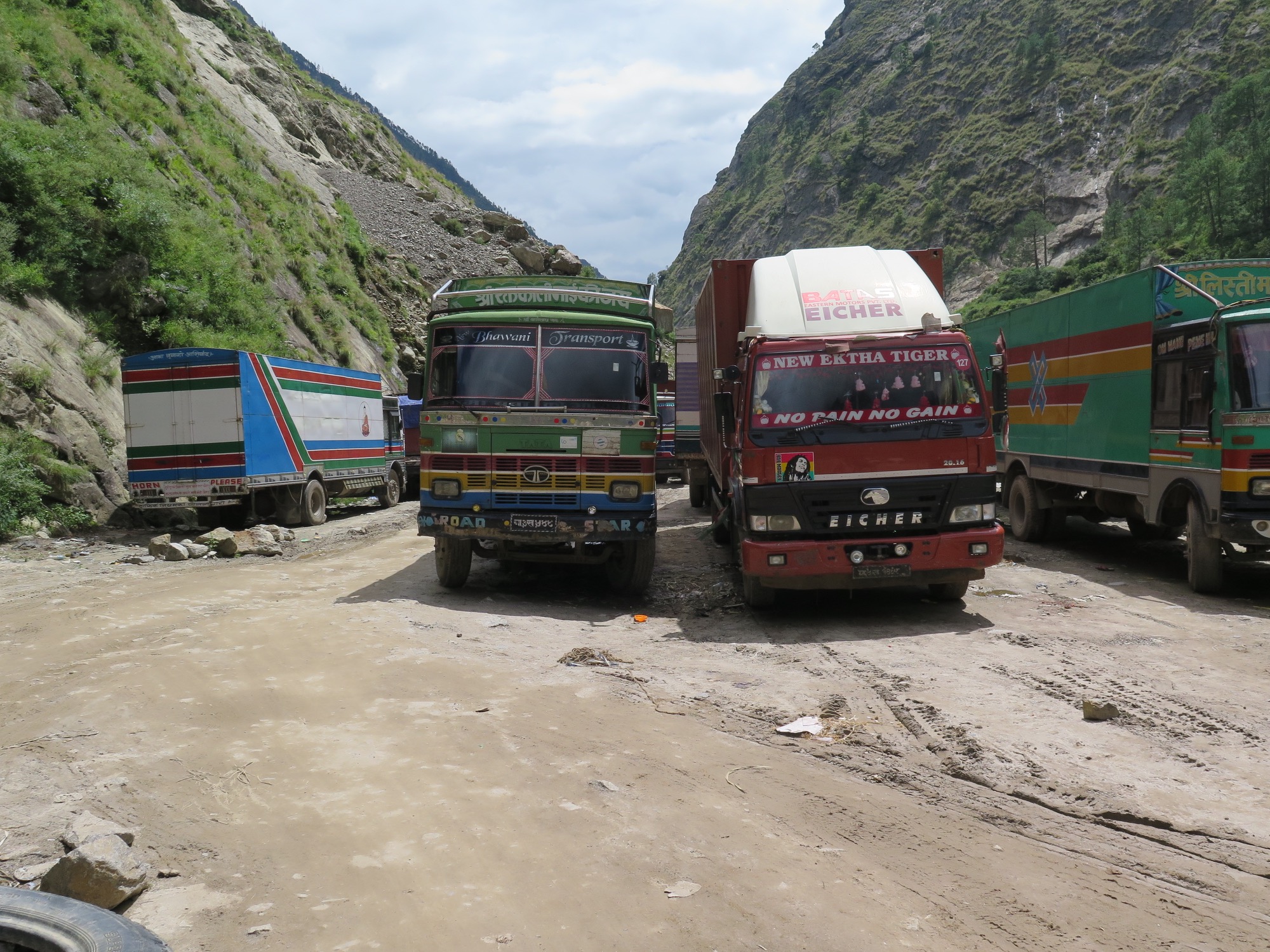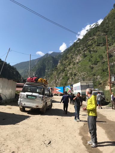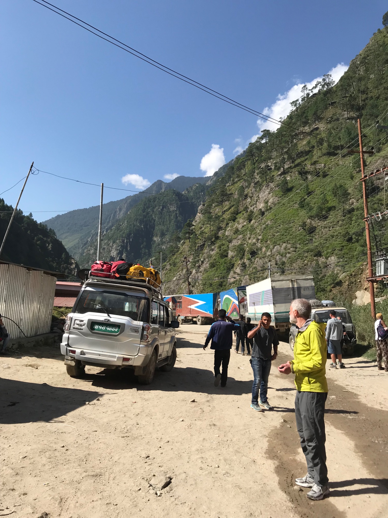 As daylight broke the mountain roads turned into muddy, potholed tracks. Several times we stopped to inspect landslides and washouts. One slide was too large to cross, so we did what people in this region do: we transferred all our gear, piece by piece, to another van waiting on the other side. Dozens of drivers, porters, and climbers were doing the exact same thing.