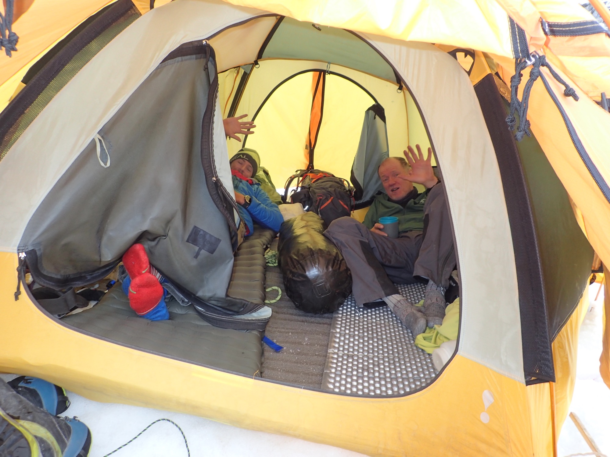 On September 27th we launched our summit push. Day one: climb to Camp 1 and sleep. Day two: climb to Camp 2, rest on oxygen until 1 a.m., then suit up and leave by 2 a.m.