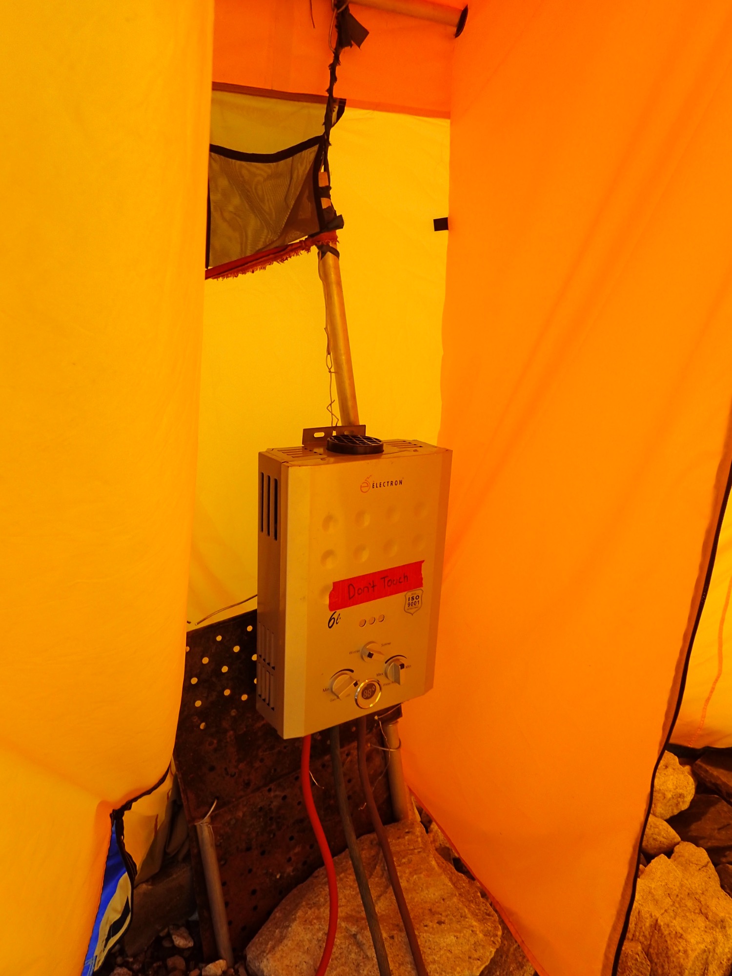 Brushing teeth, Puja ceremony, chilling, shower tent