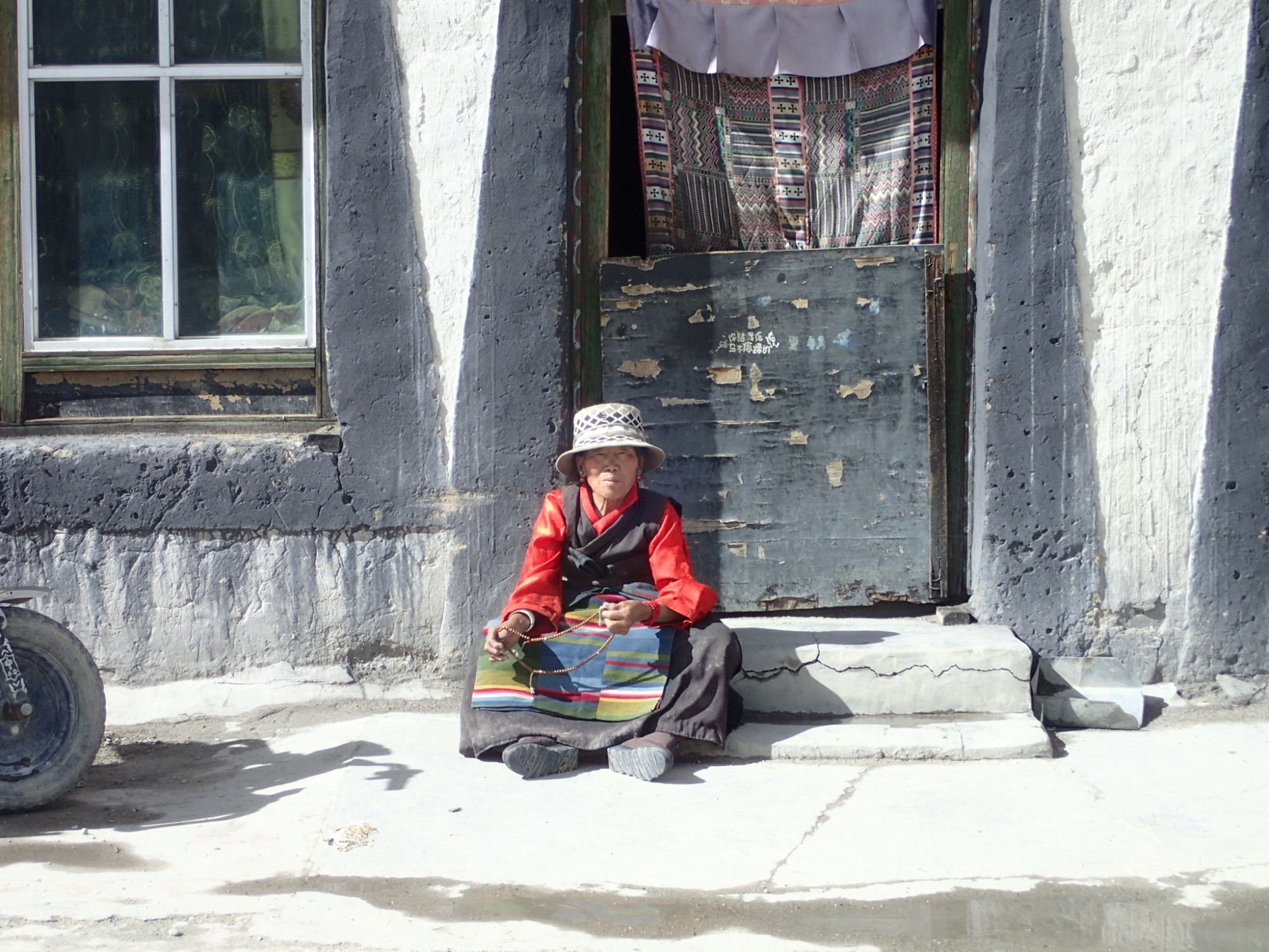 We spent the night in Zhangmu at 7,600 feet, then crossed the Tibetan Plateau to Tingri at 14,000 feet. The next day was for acclimatization: exploring shops, trying local food, and wandering dusty streets where Everest itself loomed faintly in the distance. This is where I bought my Z-stone necklace for good luck. I still wear it today.