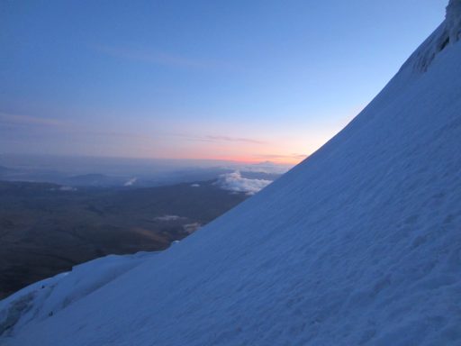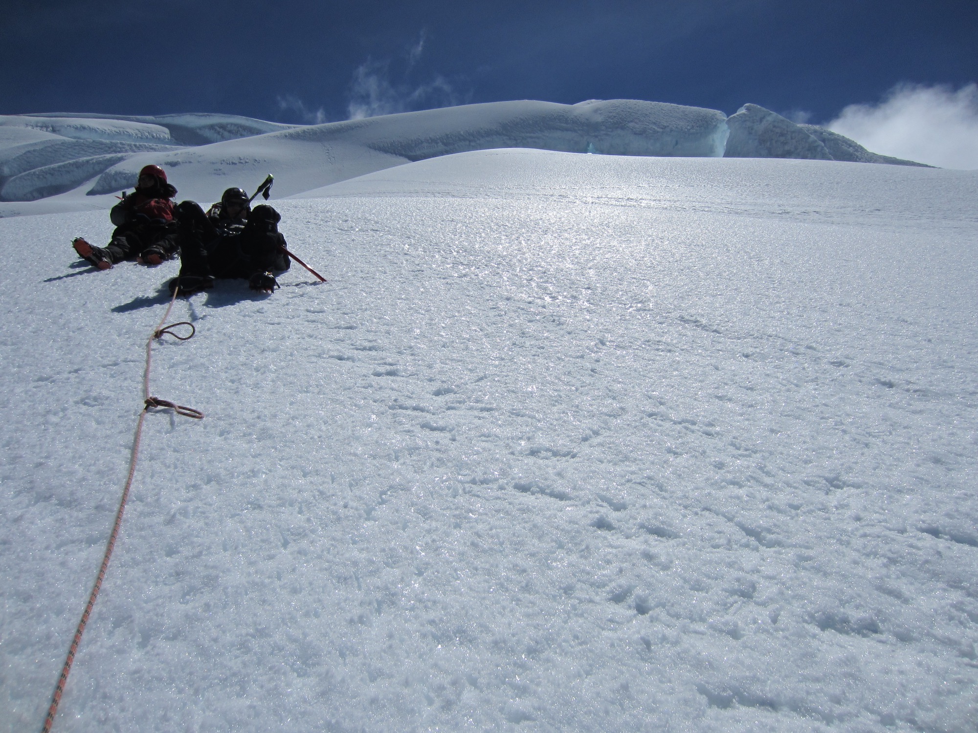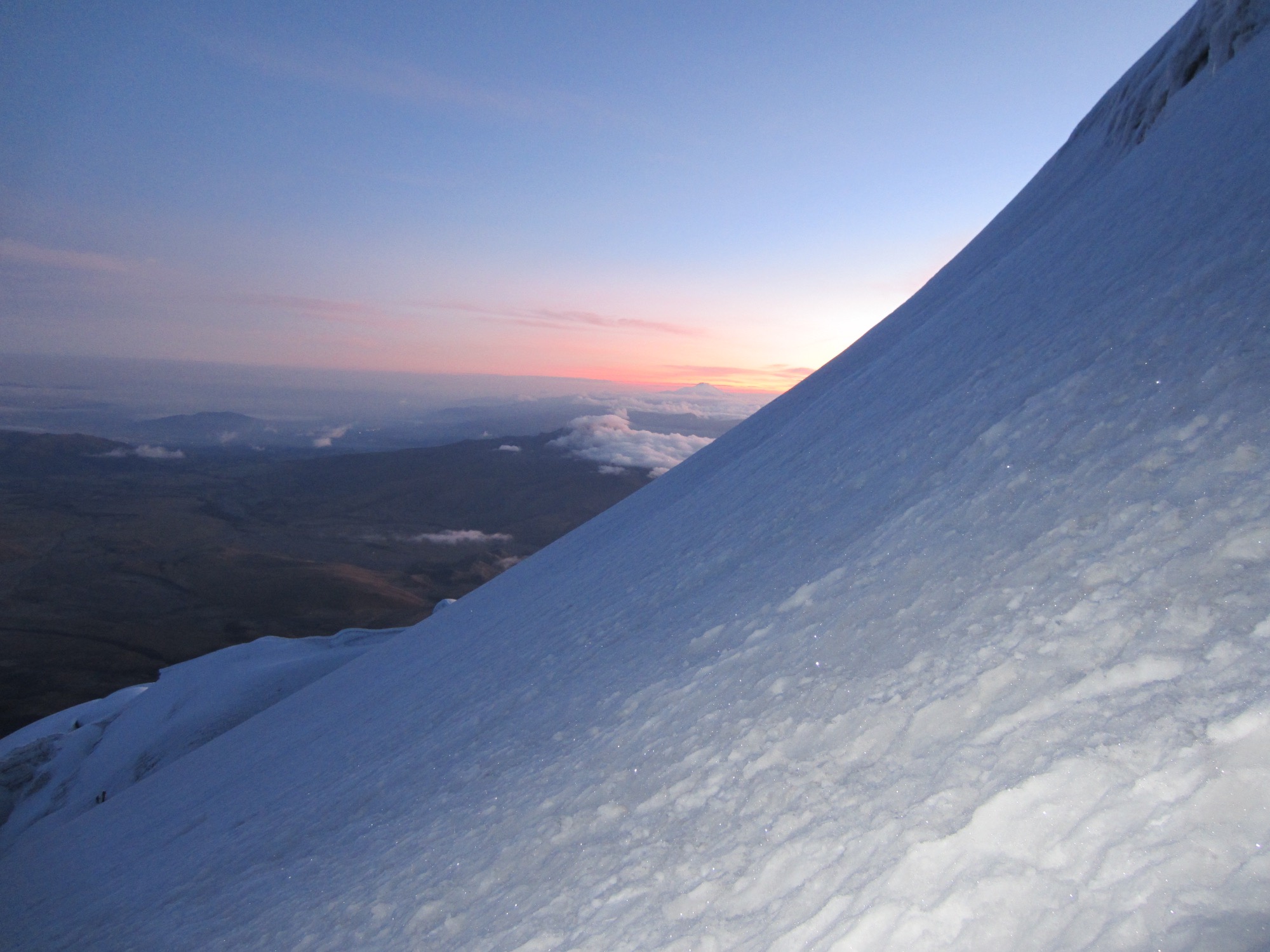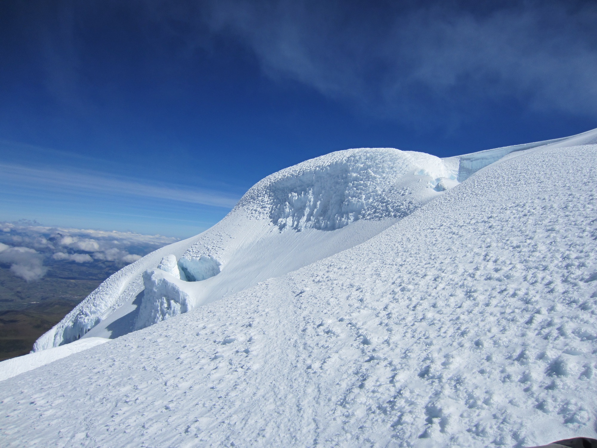 After we unpacked in our hut, we honed our glacier travel skills - rope techniques, harnesses, crampons, and ice axes. Just after midnight, under a starlit sky, we embarked on our ascent to Cayambe’s summit. These early alpine starts carried the thrill of the unknown, as our headlamps revealed only fragments of the terrain ahead, leaving the pitch of the climb to our imagination. Unlike climbs such as Carstensz Pyramid or Kilimanjaro, Cayambe was pure glacier climbing. Upon reaching the summit the fierce winds greeted us and we paused to savor hot tea from a thermos, capturing the moment in photos and videos before our descent.