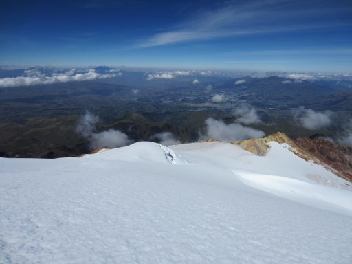 Our acclimatization hike took us to the lush, misty cloud forests above Quito, a refreshing prelude to our real mountaineering challenges. At the Teleferico, we ascended to Rucu Pichincha’s summit at around 15,696 feet. Though the day was cloudy with occasional showers, the hike was invigorating and offered a solemn beauty one only finds in nature’s highest heights.
