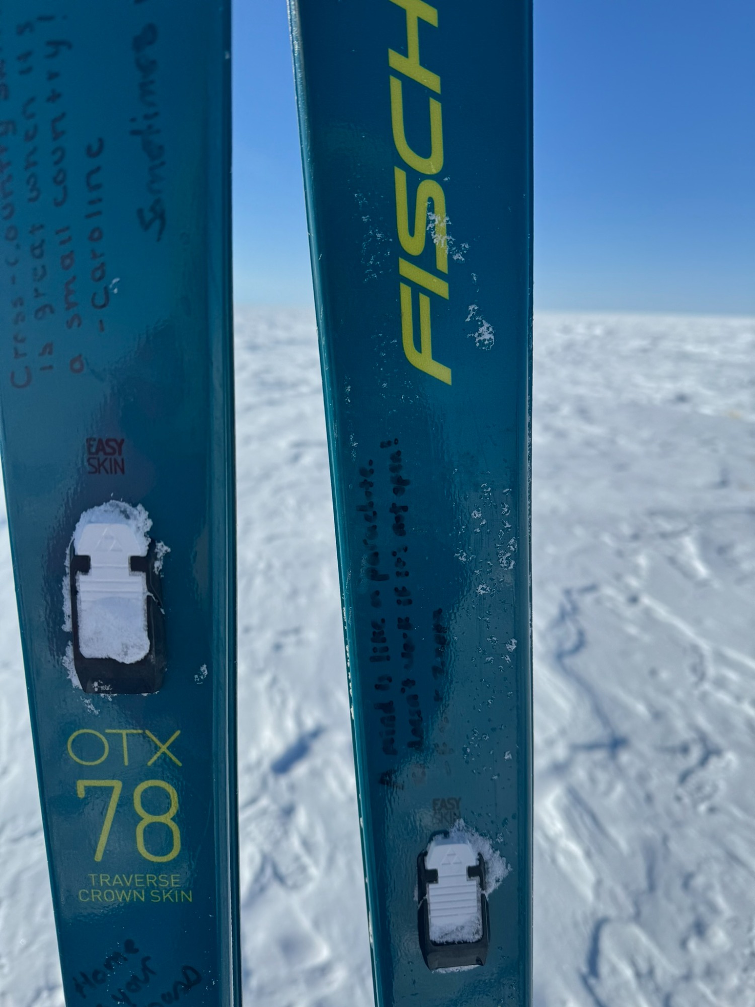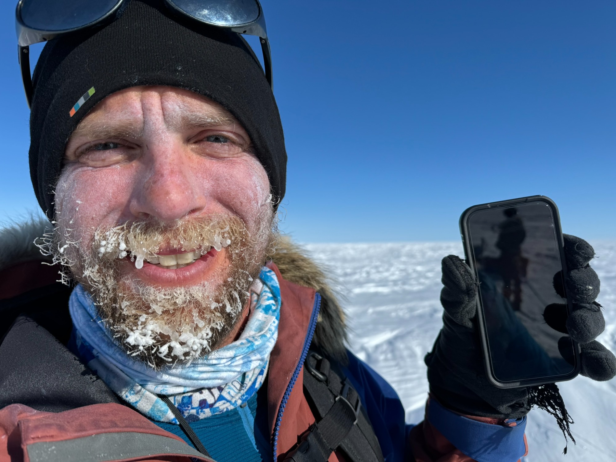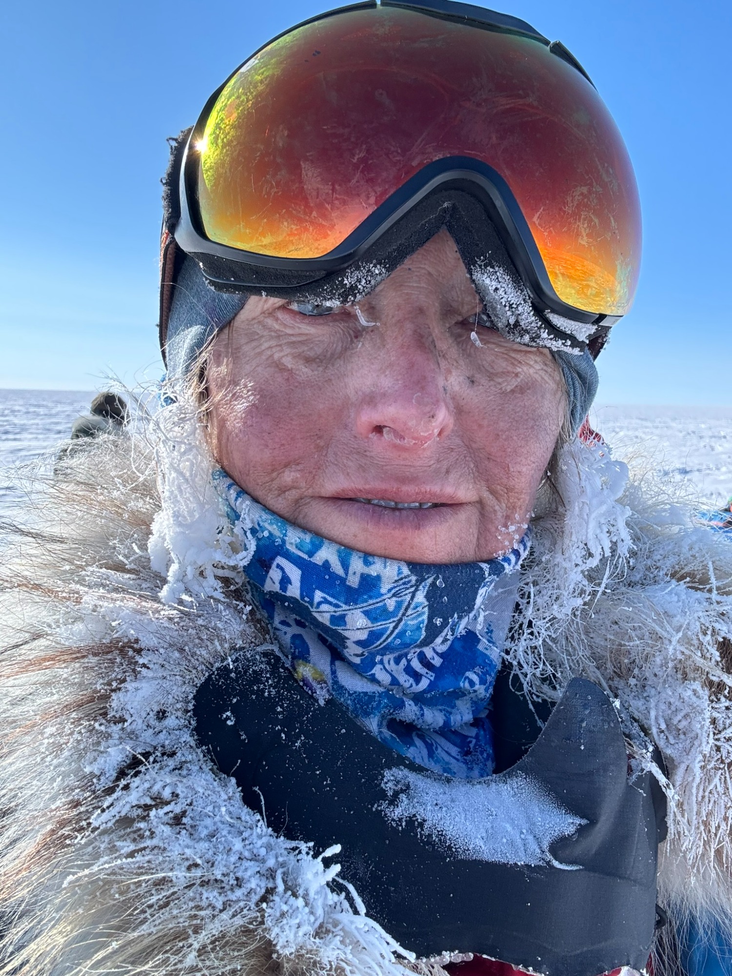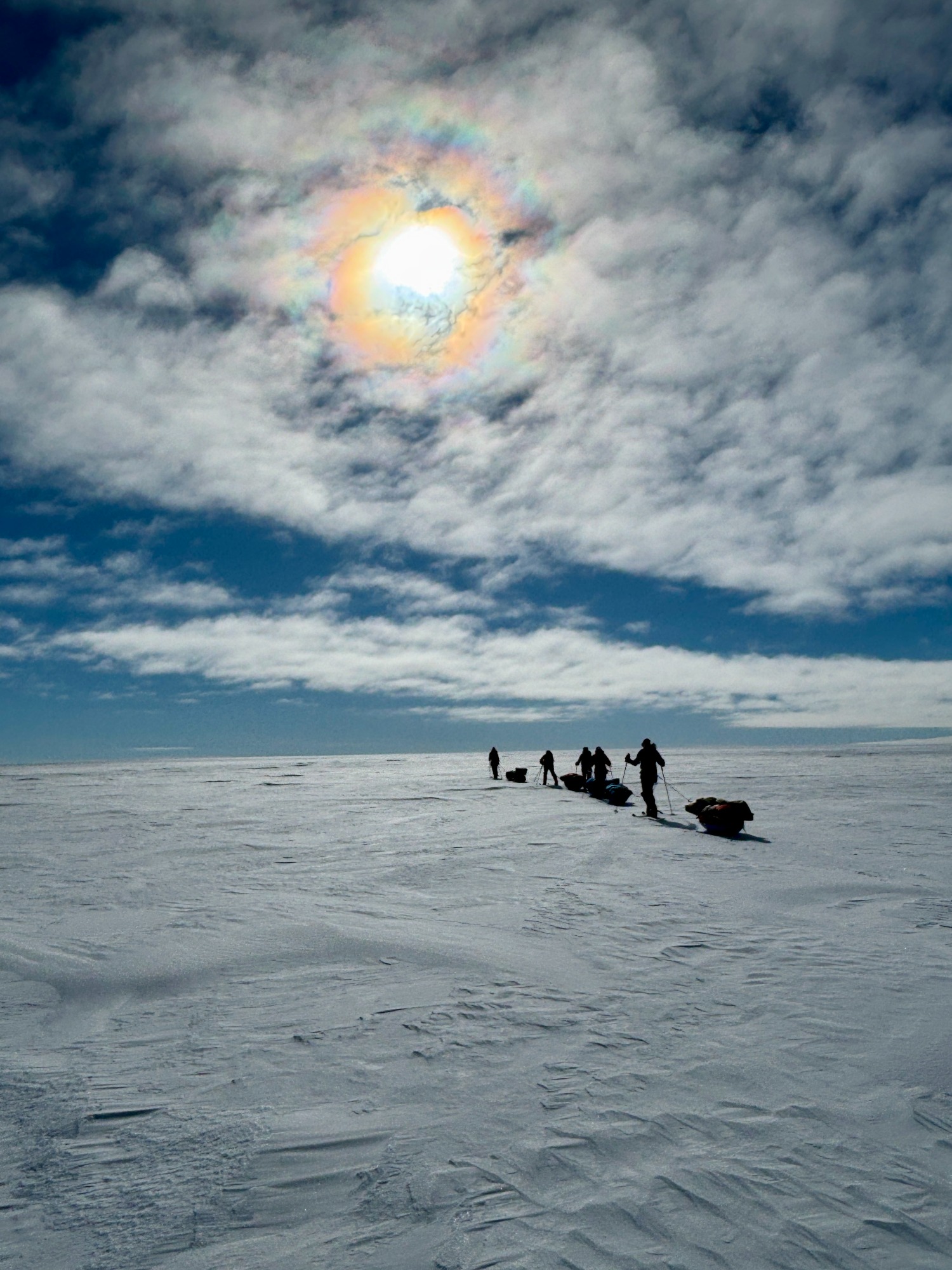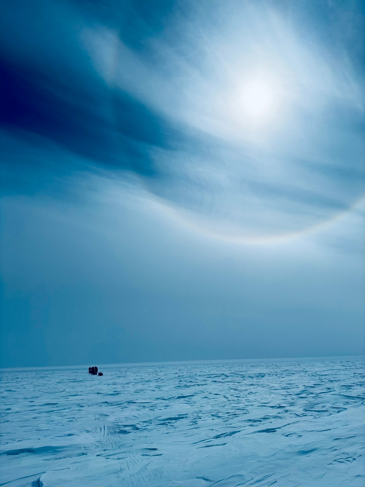 A few days later, the ice turned friendlier - just enough that we could look around, breathe, and appreciate the vastness. Day 6 was one of my best. I put on 70’s rock, let my mind drift, and felt the rhythm of skiing return. The wind was down, the sky open, the snow smooth. The world felt wide and clean. We would take turns leading. Mostly it was either Chris or Annie, but the rest of us also took turns and learned the art of navigating.