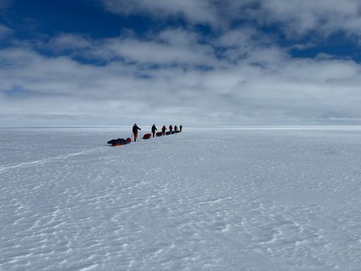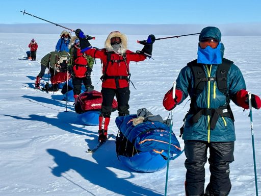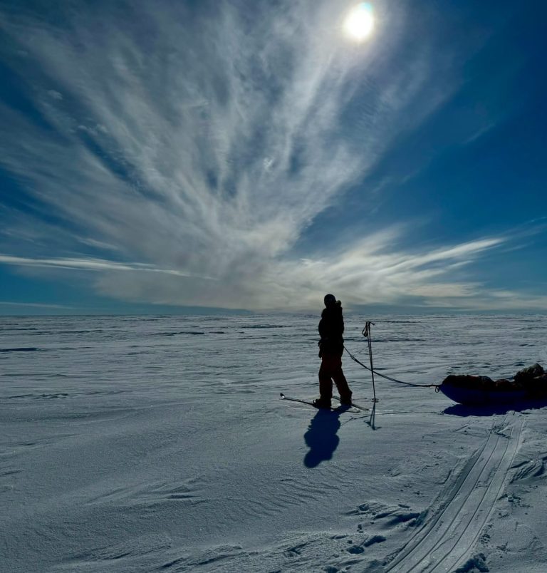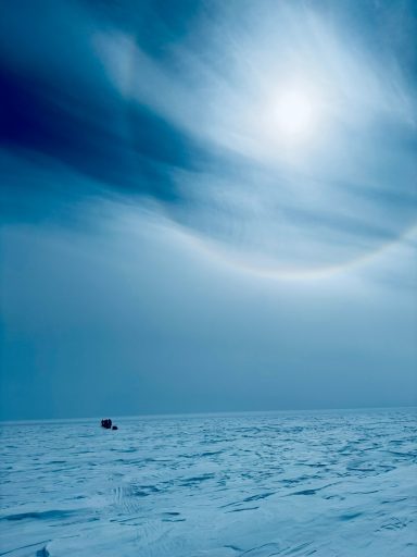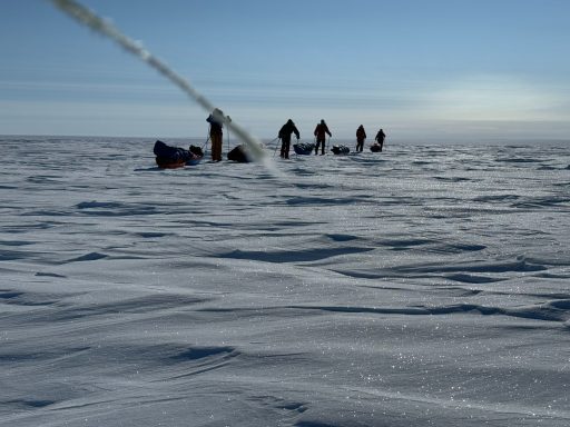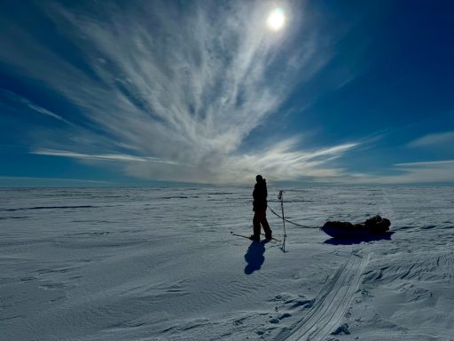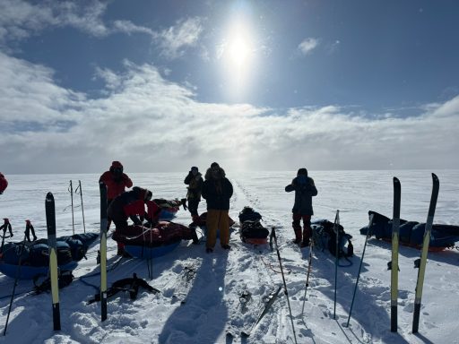 We rose at six, broke camp by nine, and trudged for hours through fields of fractured snow. The terrain forced us into wide zigzags around pressure ridges. We made only a handful of miles each day, each sled dragging like an anchor. By the end of Day 2, my legs felt like they’d done heavy labor rather than skiing.