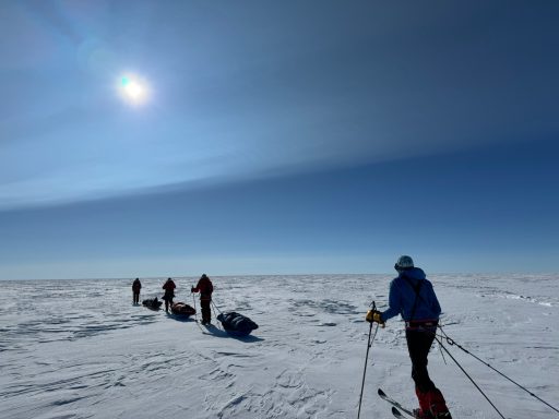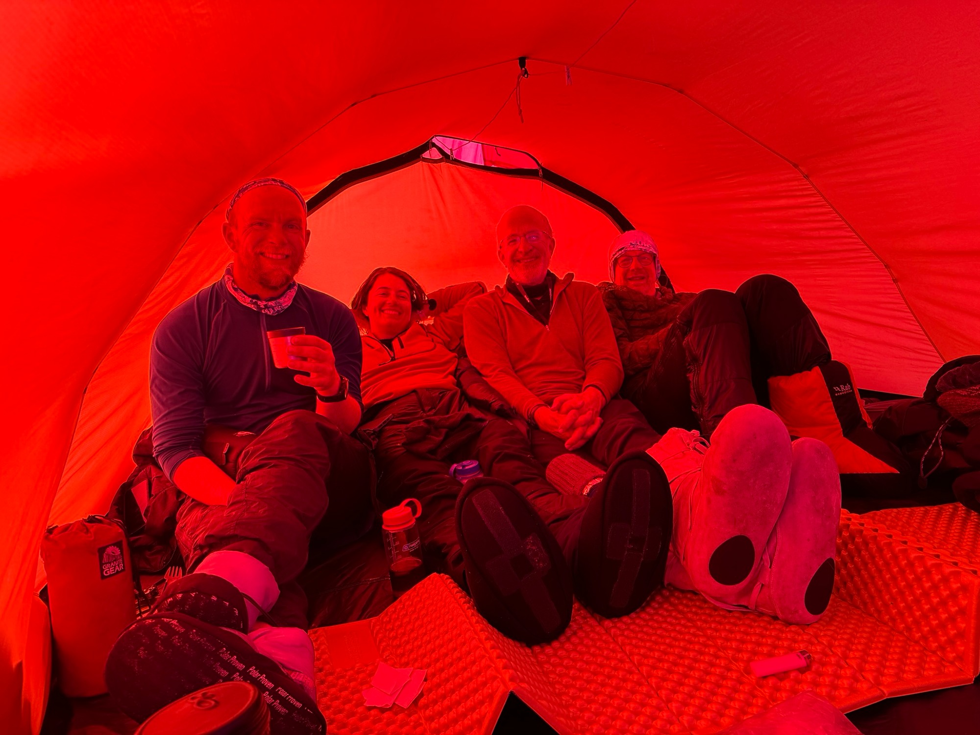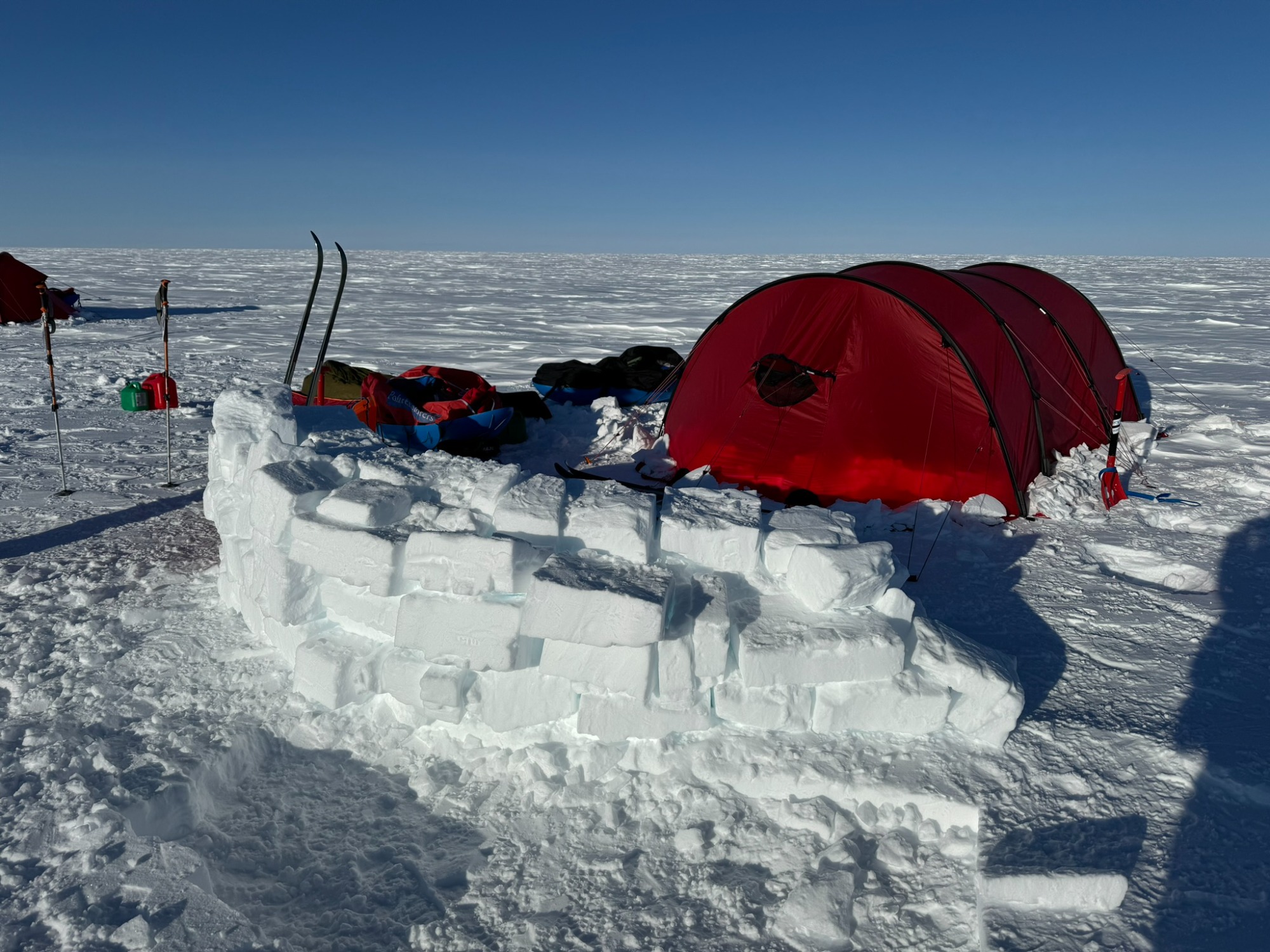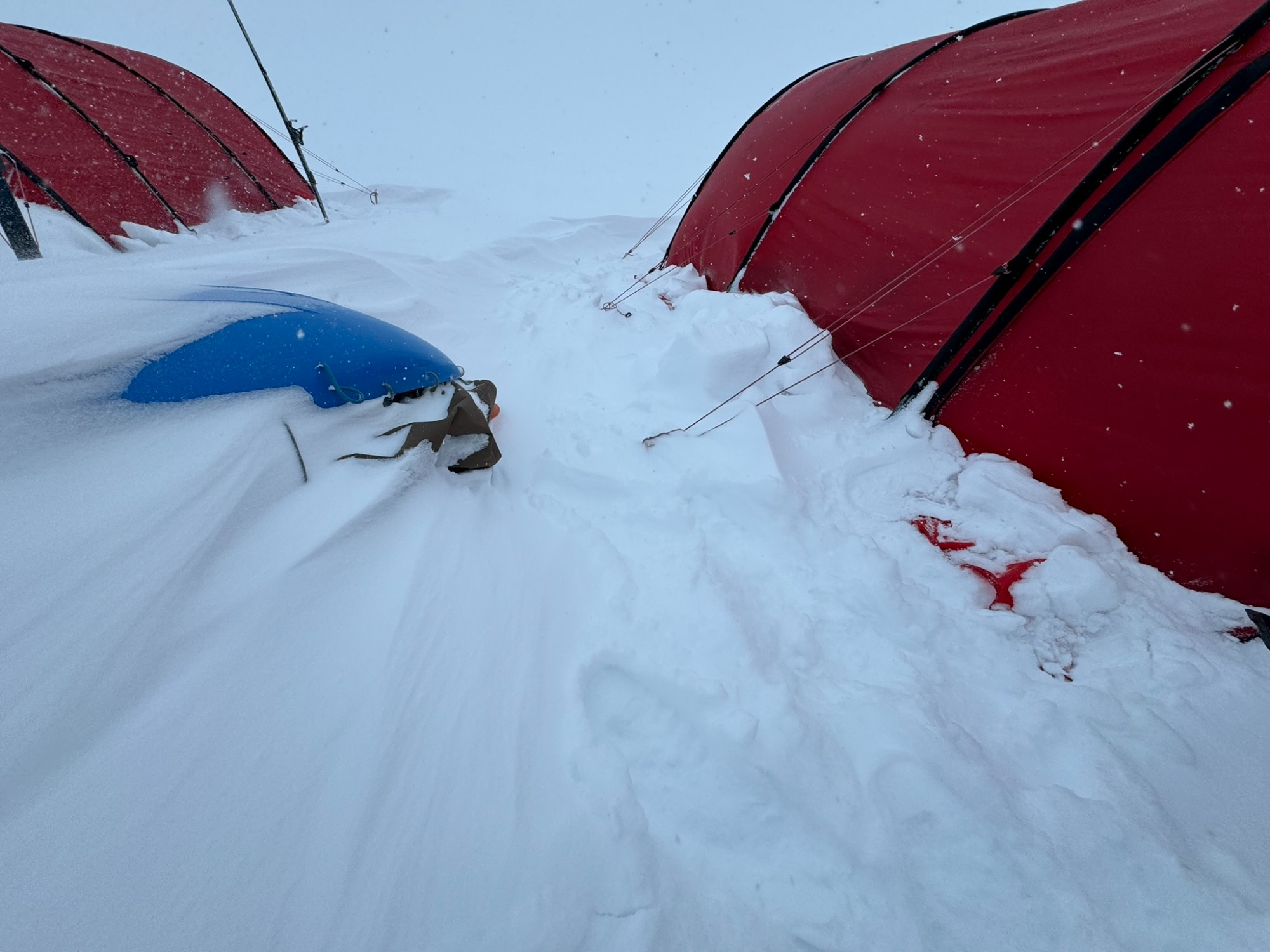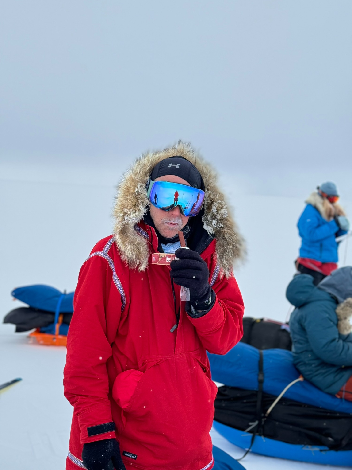 Whiteouts swallowed the horizon. Gusting winds buried our skis and poles overnight. Morning began with digging ourselves out of tent-side snowdrifts. Yet the routine - wake, wipe down, tape feet, boil snow, break camp - became almost comforting. Each of us learned new efficiencies: I trimmed my “tent kit” to just two stuff sacks and my pitaraq bag, which made transitions smoother.