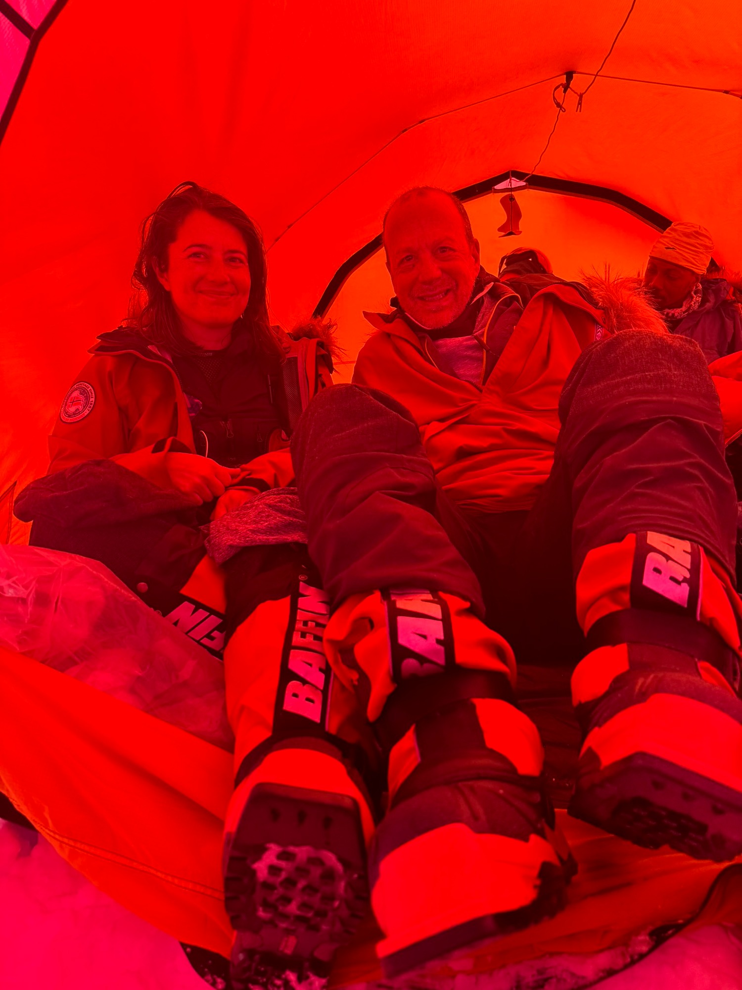 The thump of rotor blades echoed across the rocks. The helicopter crested the ridge and dropped toward us, a flash of red and white against the grey. In minutes our expedition - twenty-nine days of cold, camaraderie, fear, endurance, laughter, storms, and sunlight - transitioned from survival mode to completion.